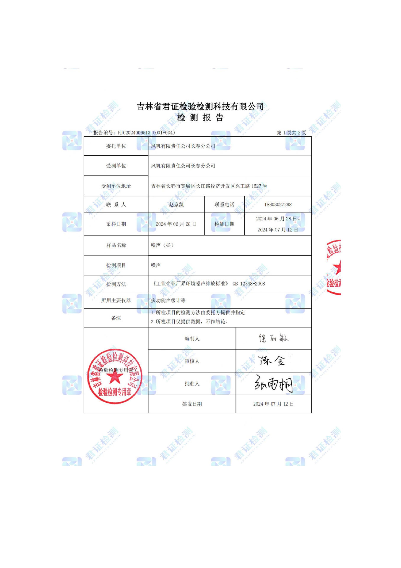 風帆有限責任公司長春分公司2024年危險廢物污染防治信息公示