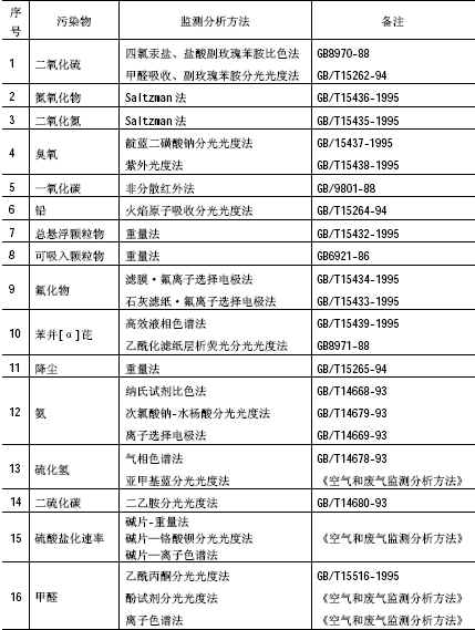 表5-1 環(huán)境空氣監(jiān)測分析方法一覽表