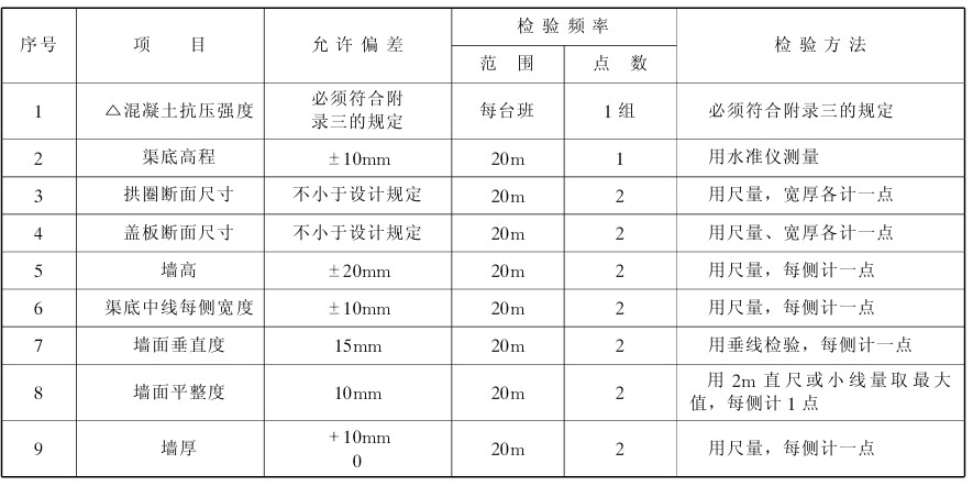 4.3.5 水泥混凝土及鋼筋混凝土渠允許偏差應(yīng)符合表